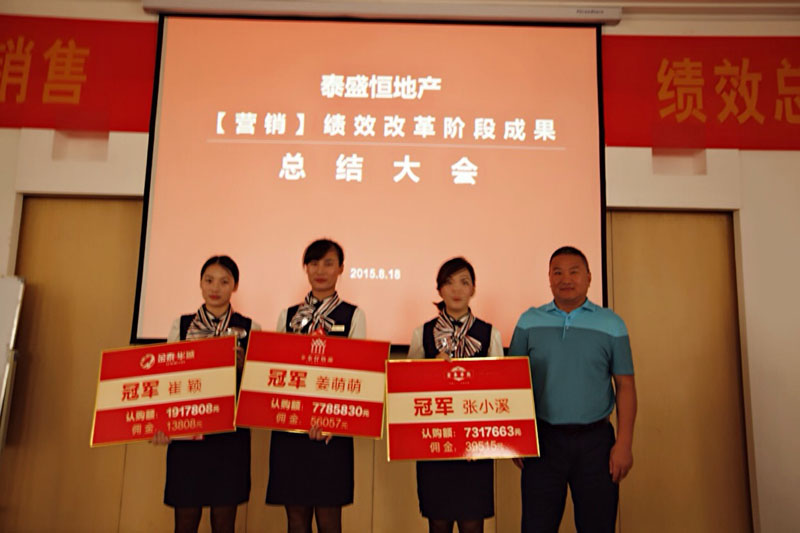 最后,孫總對本次銷售績效總結(jié)會做了重要講話。首先,孫總肯定了營銷績效改革取得的成果,并對銷售先進(jìn)個人進(jìn)行了肯定和鼓勵。接著,孫總進(jìn)一步闡釋了召開本次總結(jié)會的意義,以此為契機(jī),做產(chǎn)品的同時更要追求品質(zhì),進(jìn)而完成只有最好的品牌追求!并且聯(lián)系當(dāng)代名企改革案例,證實(shí)泰盛恒目前實(shí)行的大項(xiàng)目制是改革趨勢,而且泰盛恒會在目前秉承的高標(biāo)準(zhǔn)高質(zhì)量的基礎(chǔ)上堅(jiān)持更高的標(biāo)準(zhǔn),高遠(yuǎn)的目標(biāo)!因?yàn)樘┦⒑悖刻觳灰粯樱∫驗(yàn)橹挥羞@樣,泰盛恒才能持久做毋庸置疑的行業(yè)標(biāo)桿,成為行業(yè)的潮流引領(lǐng)者!
