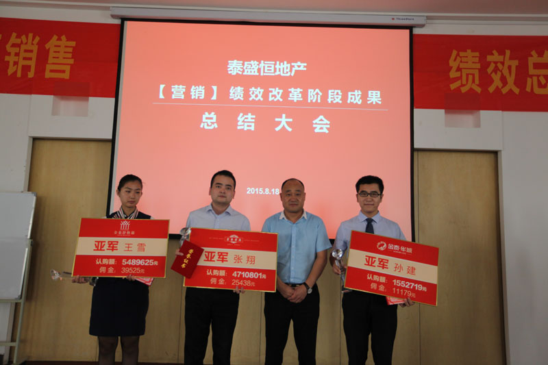 隨后,大會對各項(xiàng)目的銷售的先進(jìn)個人進(jìn)行表彰,宣讀銷售業(yè)績,高業(yè)績高績效的改革模式,不僅激勵銷售人員勇創(chuàng)佳績,更是給予現(xiàn)場的與會人員極大的震撼,尤其是班總和孫總分別對銷亞和銷冠進(jìn)行的頒獎儀式使得現(xiàn)場的氛圍達(dá)到了高潮!